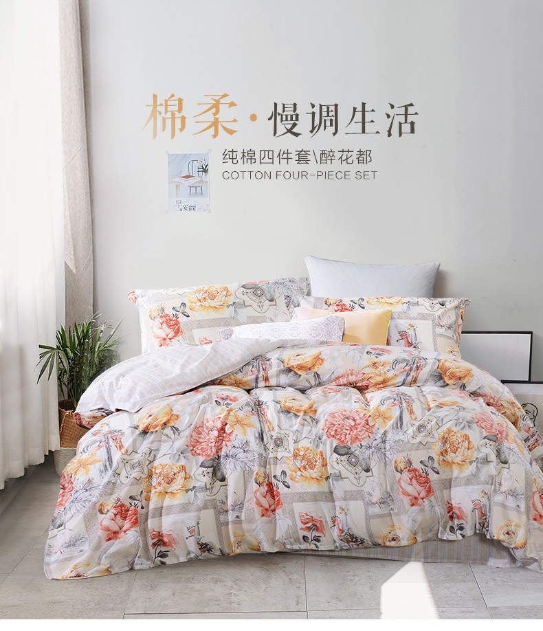 Fuana home textile Shengzhi flower bed four piece set pure cotton cotton set double bedclothes bed sheet quilt cover garden 1.8/2m bed (quilt cover 230 * 229cm) [picture price brand quotation] - Jingdong