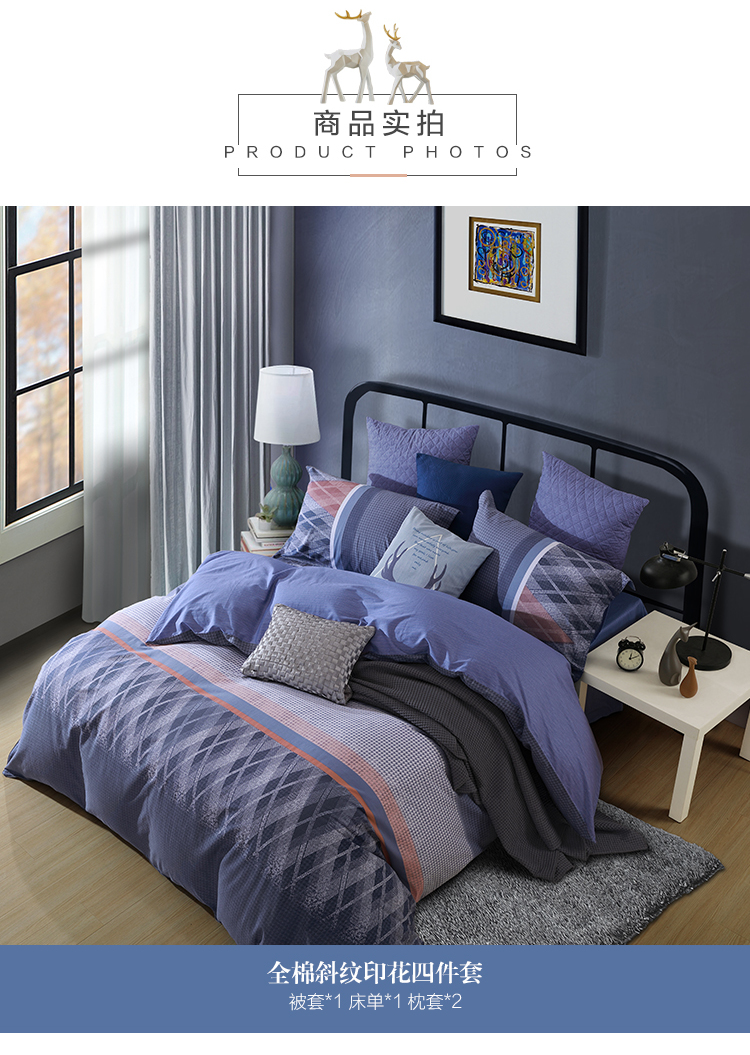 Mercury home textile four piece cotton printing set Leiden Leiden 1.2m (suitable for 150 * 210cm quilt core) [picture price brand quotation] - Jingdong